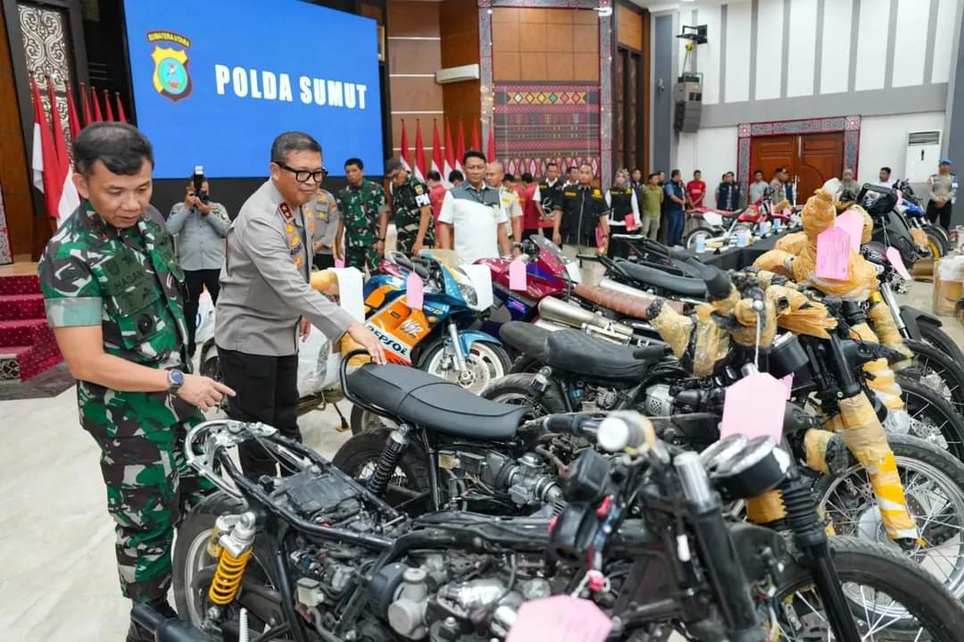 Barang-barang tersebut terdiri dari sejumlah sepeda motor gede (moge), antara lain, Honda Afrika Win 1.100 CC, Honda SP Pro 150 CC, BMW F 850 CC, Harley Davidson SPI 1.200 CC Triumph Bonneville 1.200 CC, Kawasaki Ninja Honda Trail 250 CC, Kawasaki (nomor rangka rusak dan hancur).