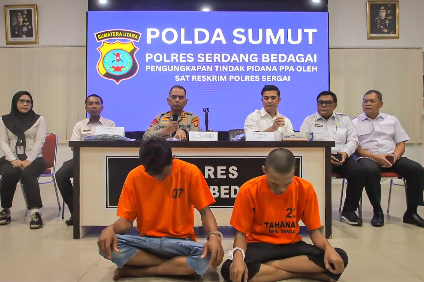 Kapolres Sergai, AKBP Jhon Sitepu, S.I.K., M.H., didampingi Kasat Reskrim Iptu Binrod Situngkir, S.H., M.H., Kadis Sosial Arianto, Kadis P2KBP3A dr. Helminur Sinaga, penyuluh Dinas Sosial Rinson Tarihoran, serta pendamping anak dari Dinas Sosial, menjelaskan bahwa kasus terungkap berkat laporan keluarga dan penyelidikan Unit Perlindungan Perempuan dan Anak (PPA) Sat Reskrim Polres Sergai.