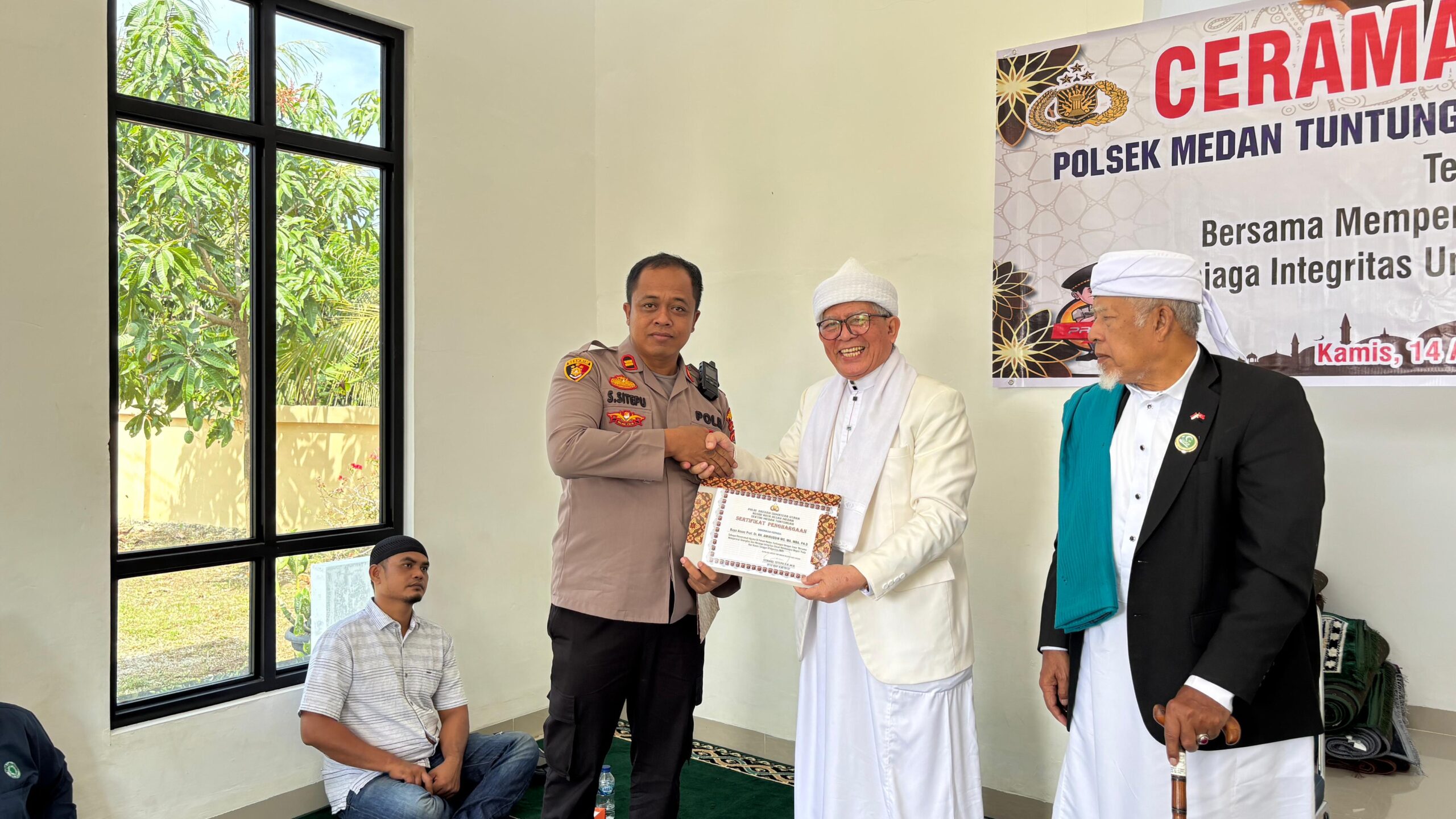 Sebagai bentuk apresiasi, Polsek Medan Tuntungan memberikan sertifikat penghargaan kepada para tokoh agama yang menjadi pembicara.