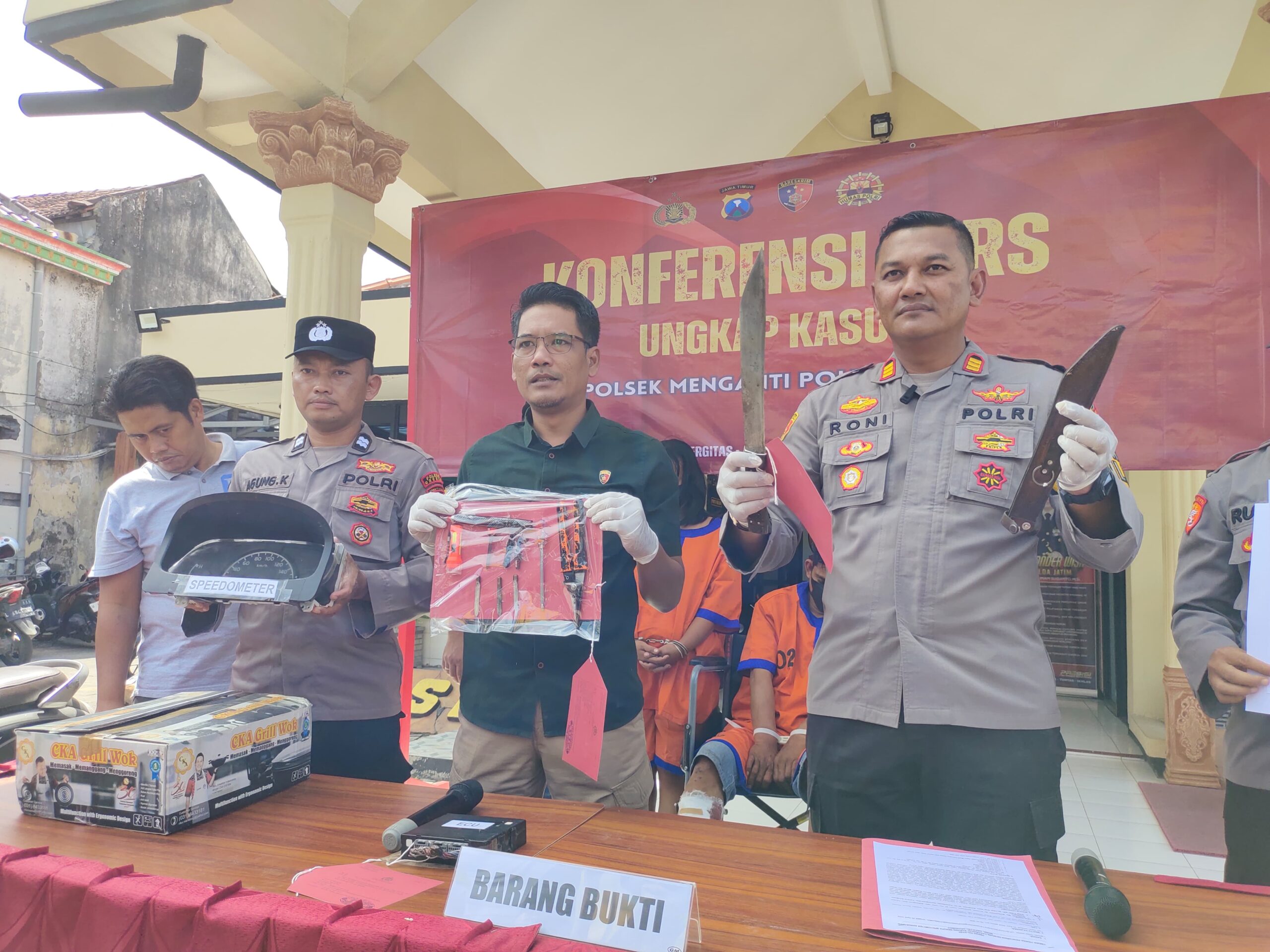 Kapolres Gresik AKBP Adhitya Panji Anom melalui Kapolsek Menganti AKP Roni Ismullah mengatakan pada hari Senin tanggal 29 April 2024 sekitar pukul 16.00 Wib, di Jalan Raya Dusun Grogol Desa Laban Kecamatan Menganti Gresik. tepatnya di Parkiran kantor PT. NCG Cargo telah terjadi pencurian barang berupa 1 buah spedometer Mobil Daihatsu Grand max warna hitam merek Denso, 1 buah ICU , 1 Set Panci masak merk CKA Grill Wok.