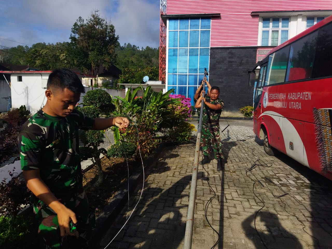 MAWARTANEWS.com, Tarutung – Tim Perhubungan TNI AD menggelar/memasang Alat Komunikasi di lapangan dalam rangka mempermudah memberikan informasi kepada petugas di lapangan yang terdampak akibat Gempa Bumi di Tapanuli Utara.
