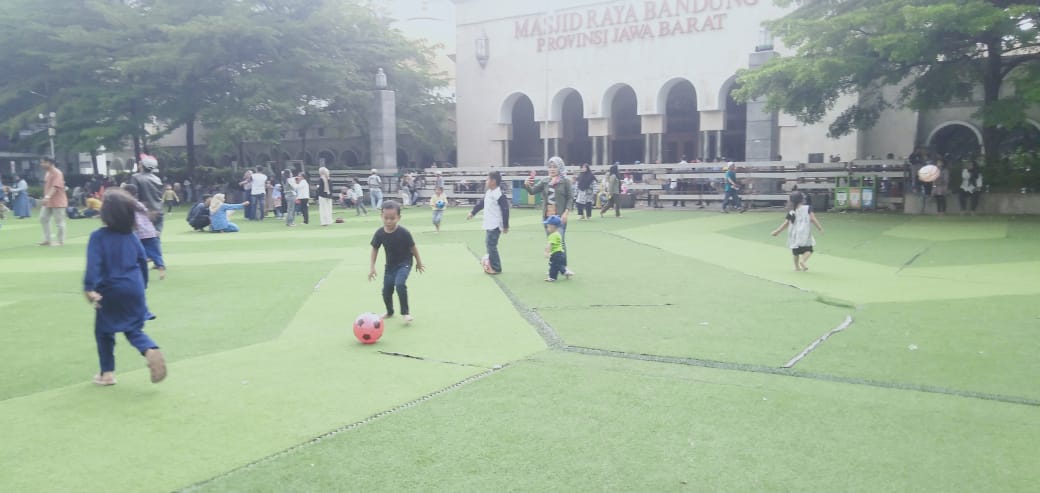 Selain itu, ratusan warga ini pun terlihat begitu senang bisa liburan ke alun-alun Kota Bandung terutama anak-anak karena bisa bermain bola.