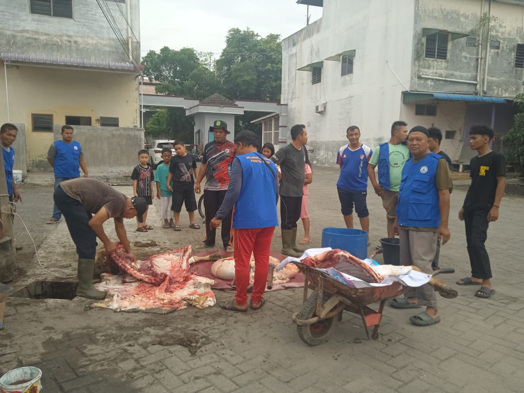 MEDAN – Dalam rangka memeriahkan Hari Raya Idul Adha 1446 H. Dewan pimpinan cabang Himpunan Nelayan Nasional Indonesia (DPC HNSI) Kota Medan bersama Relawan Wak Young dan Karang Taruna Belawan sembelih dua hewan qurban berupa lembu di Perumahan Pasar Nippon, Kelurahan Payah Pasir, Kecamatan Medan Marelan, Sabtu (7/6).