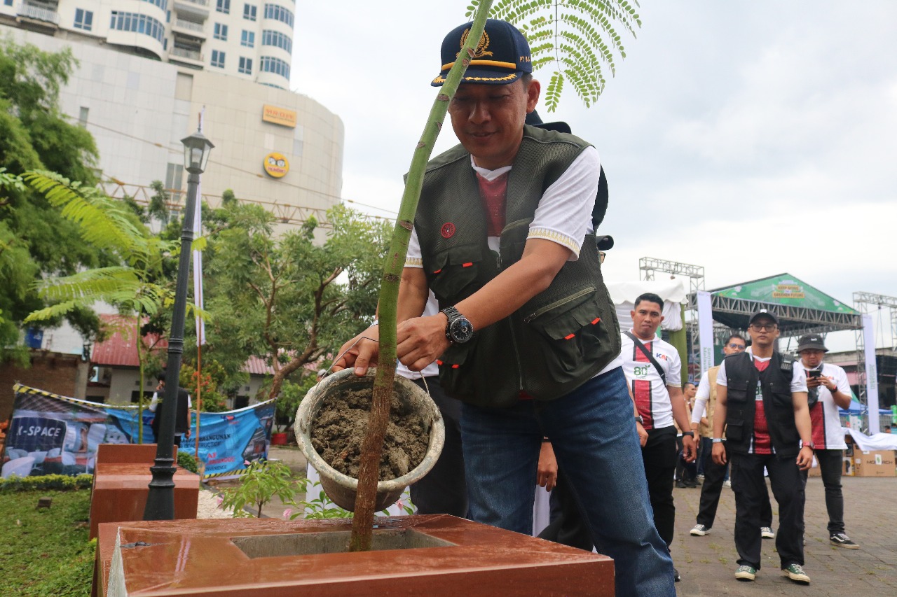 Vice President KAI Divre I Sumut, Sofan Hidayah, menanam pohon di lingkungan kerja KAI.
