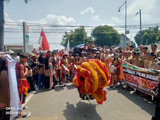 Di sela-sela orasi, di tampilkan aksi reog ponorogo yang menggambarkan perlawanan terhadap kezoliman.
