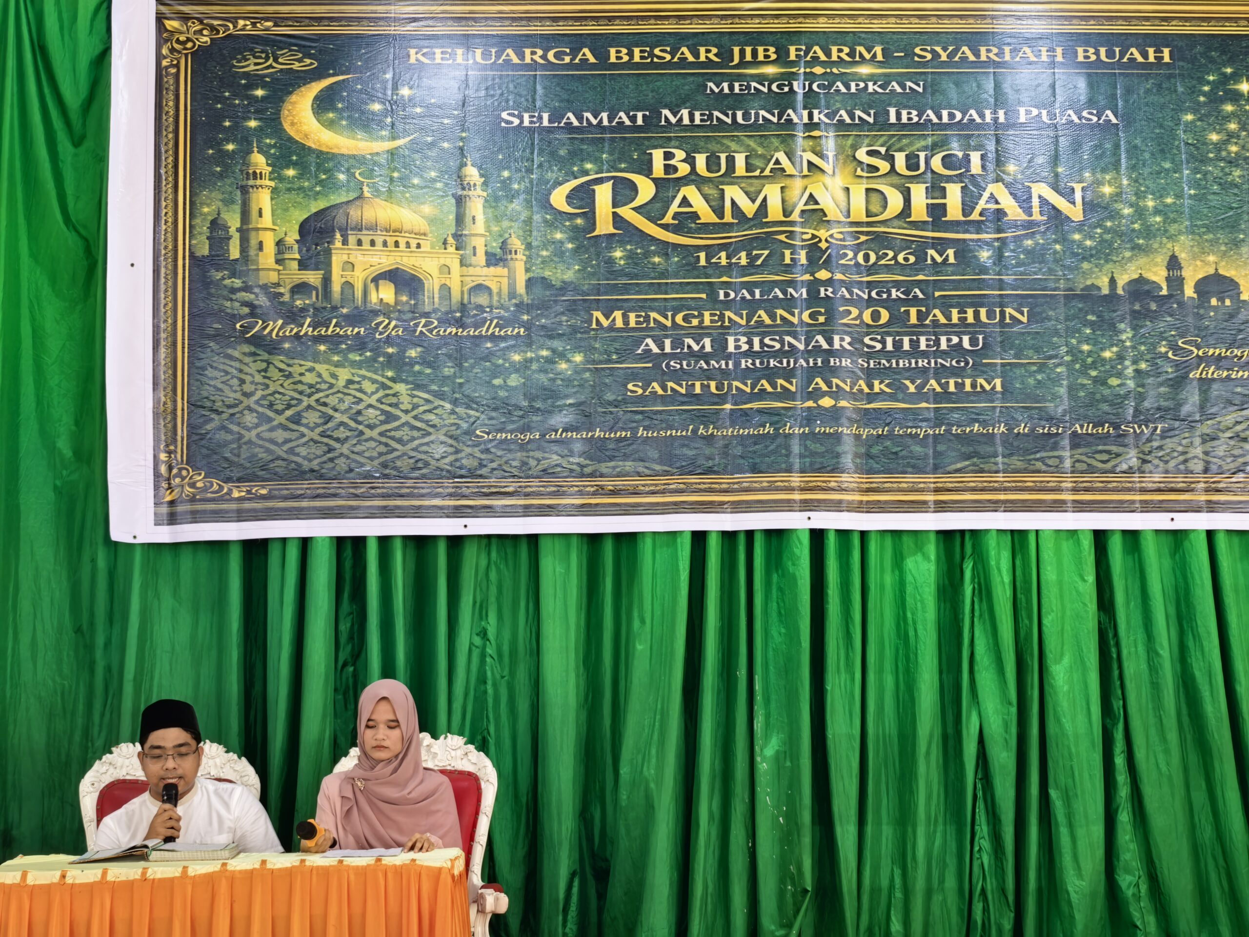 Medan (MAWARTA) – Keluarga besar JIB (Jujur Itu Berkah) Farm – Syariah Buah menggelar santunan anak yatim dan pengajian dalam rangka mengenang 20 tahun wafatnya Almarhum Bisnar Sitepu di Balai Sebayak, Jalan Jamin Ginting, Medan, Minggu (8/2/2026) mulai pukul 10.00 WIB.