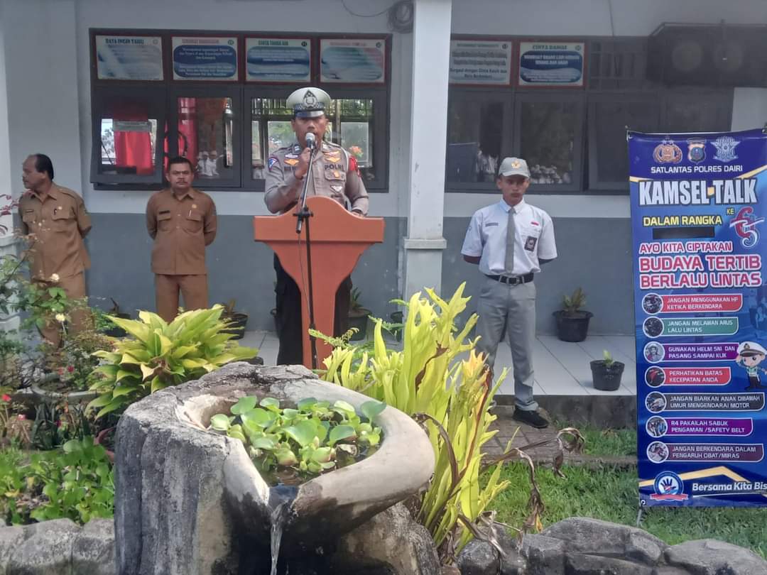 Kapolres Dairi AKBP Agus Bahari, P.A, S.I.K, SH, M.Si Melalui Kasat lantas Polres Dairi AKP Herliandri, SH Bersama Personil Sat lantas Polres Dairi AIPTU Nico Pardosi, SH Melaksanakan Kegiatan Police Goes To School di Sekolah SMA N I SILAHISABUNGAN Dalam Rangka Sosialisasi Tertib Berlalu Lintas, Senin (20/11/2023)