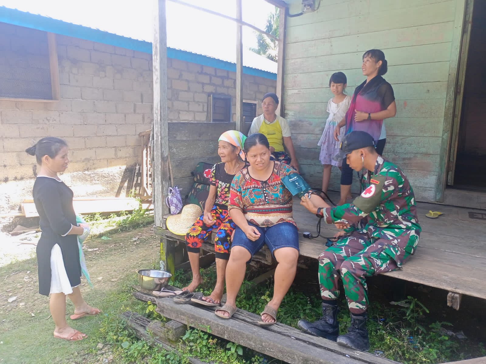 pelayanan kesehatan gratis keliling yang dilakukan dengan sistem door to door merupakan bentuk kepedulian Satgas terhadap kesehatan masyarakat di perbatasan terhadap kesehatan warganya dan menghilangkan kesulitan masyarakat untuk berobat dikarenakan jauhnya puskesmas dari tempat tinggalnya. Dan kami memberikan yankes berupa pengecekan tensi darah dan memberikan obat-obatan. Tutup Dansatgas.