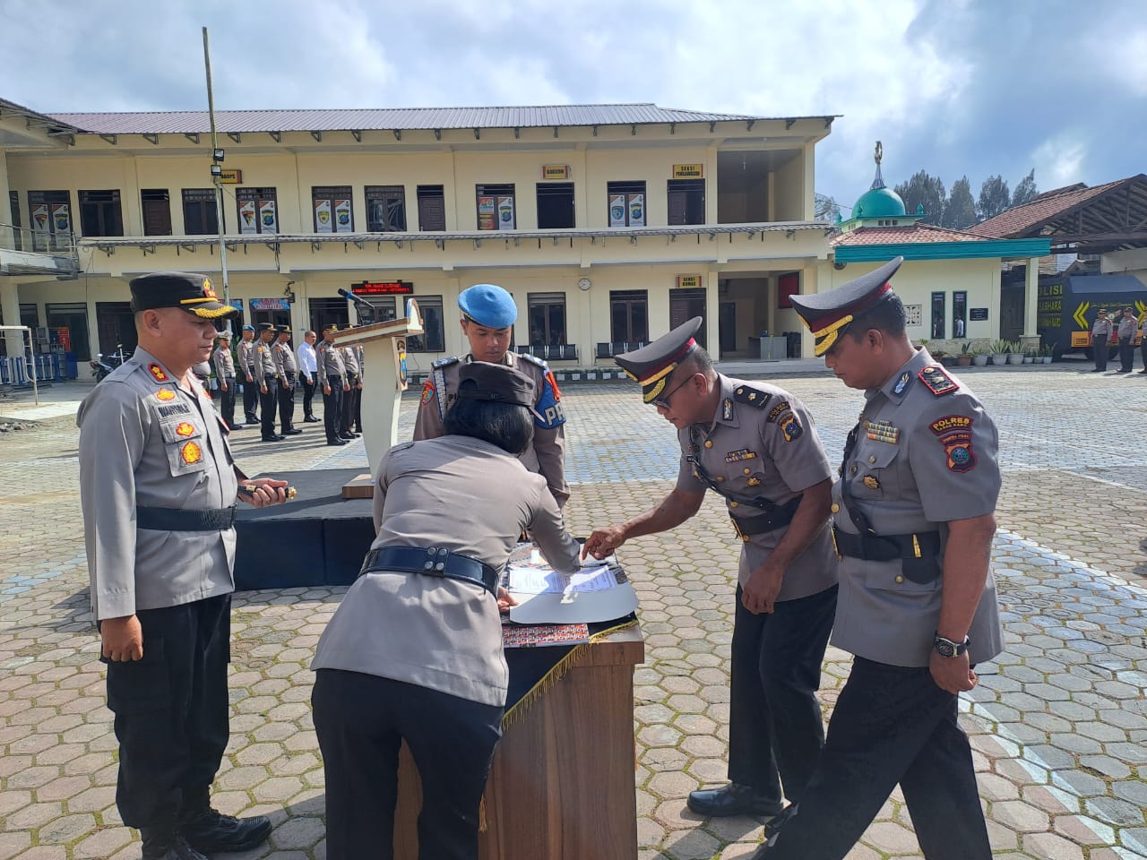 Pada upacara pelantikan tersebut diikuti seluruh PJU, Kapolsek, Perwira, Brigadir dan ASN Polres Tanah Karo serta Pengurus Bhayangkari Cabang Tanah Karo.[ Surbakti ]