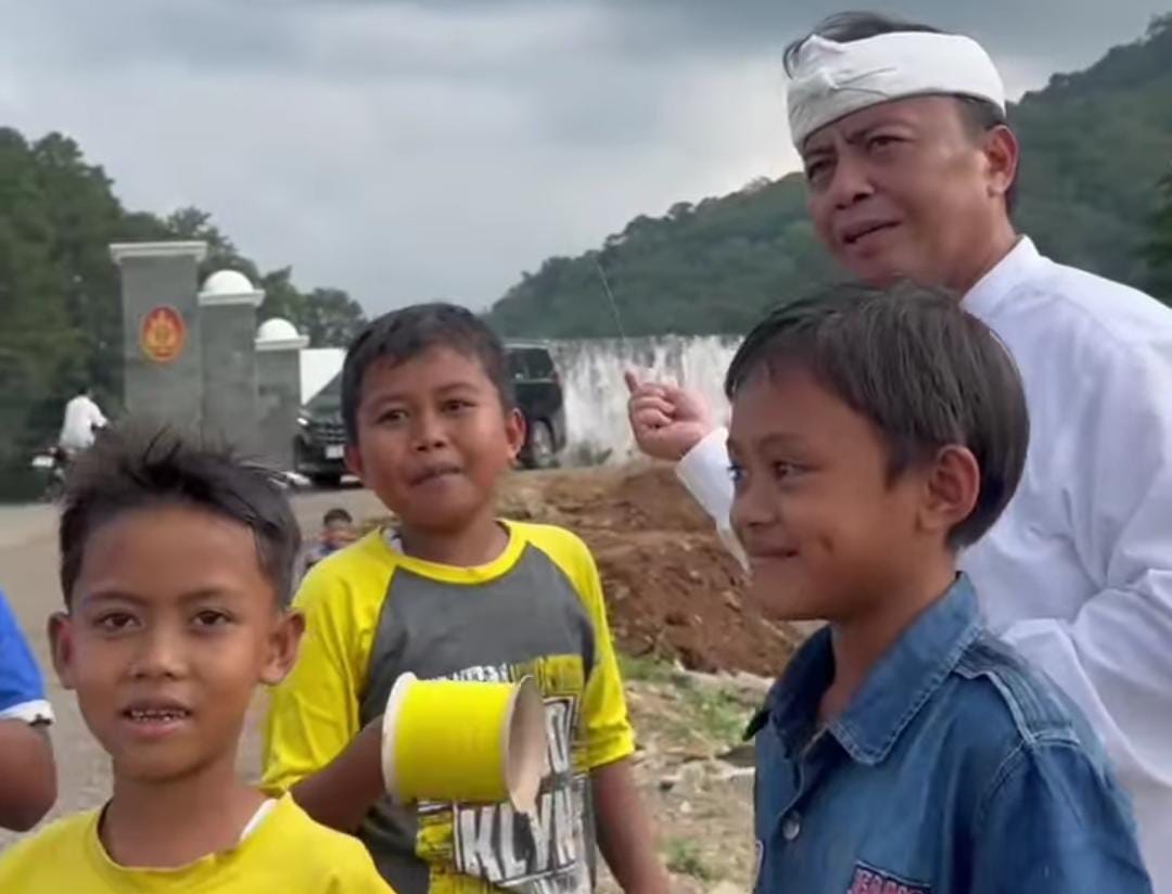 SUMEDANG – Sekretaris Daerah (Sekda) Provinsi Jawa Barat (Jabar), Herman Suryatman main langlayangan bersama anak-anak di Cigugur, Kabupaten Sumedang.