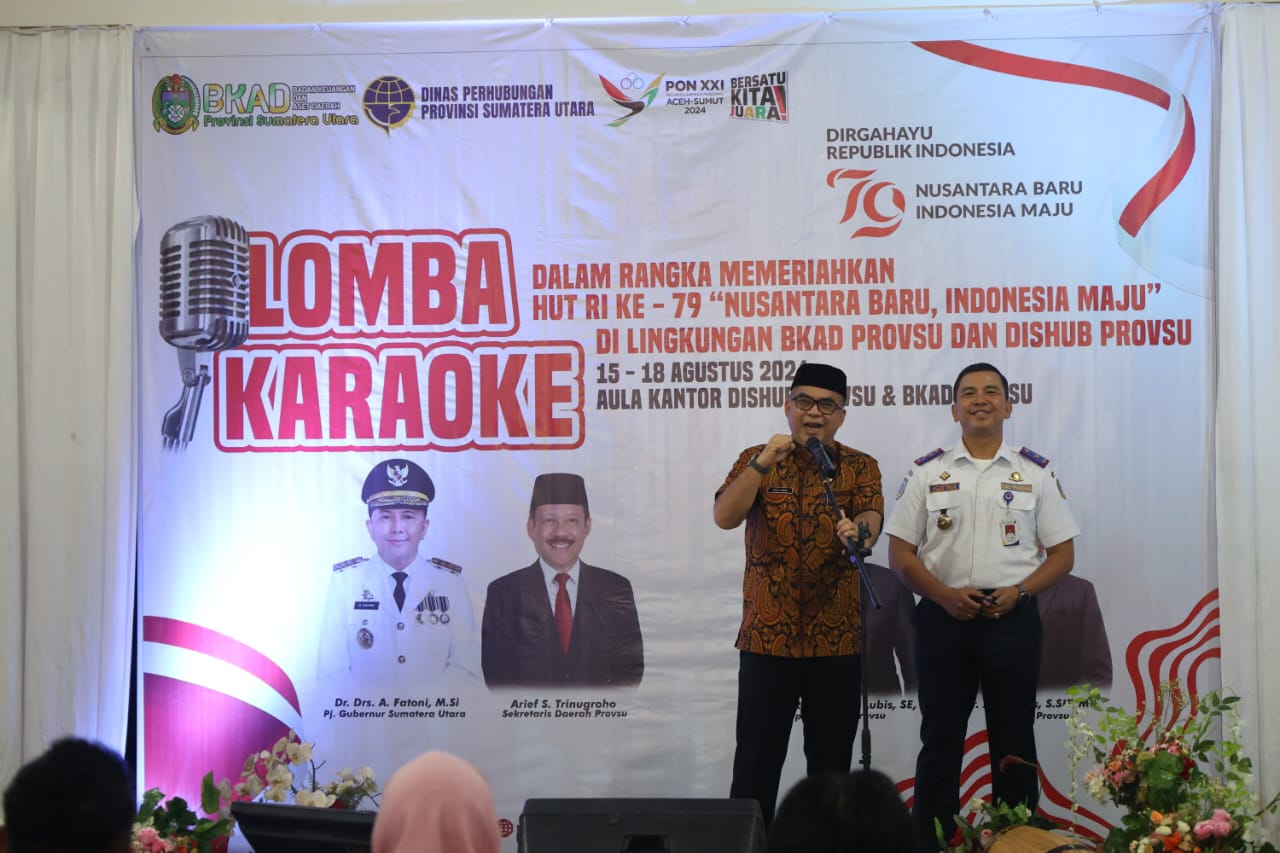 MAWARTANEWS.com, Medan | Dinas Perhubungan Provinsi Sumatera Utara (Dishub Sumut) dan Badan Keuangan dan Aset Daerah (BKAD) Sumut menyambut perayaan Dirgahayu ke-79 Republik Indonesia dengan cara yang unik dan meriah. Mereka menggelar lomba karaoke yang diikuti dengan antusias oleh para Aparatur Sipil Negara (ASN) dan non-ASN dari kedua instansi tersebut.