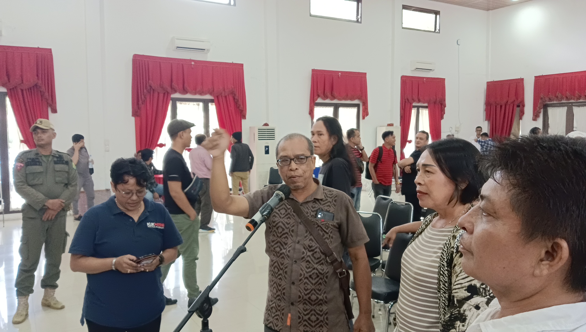 Wartawan senior, Lilik Riadi Dalimunthe protes keputusan Panitia Pemilihan Koordinator Wartawan Pemko Medan, Rabu (7/3). (Tison/mawartanews).