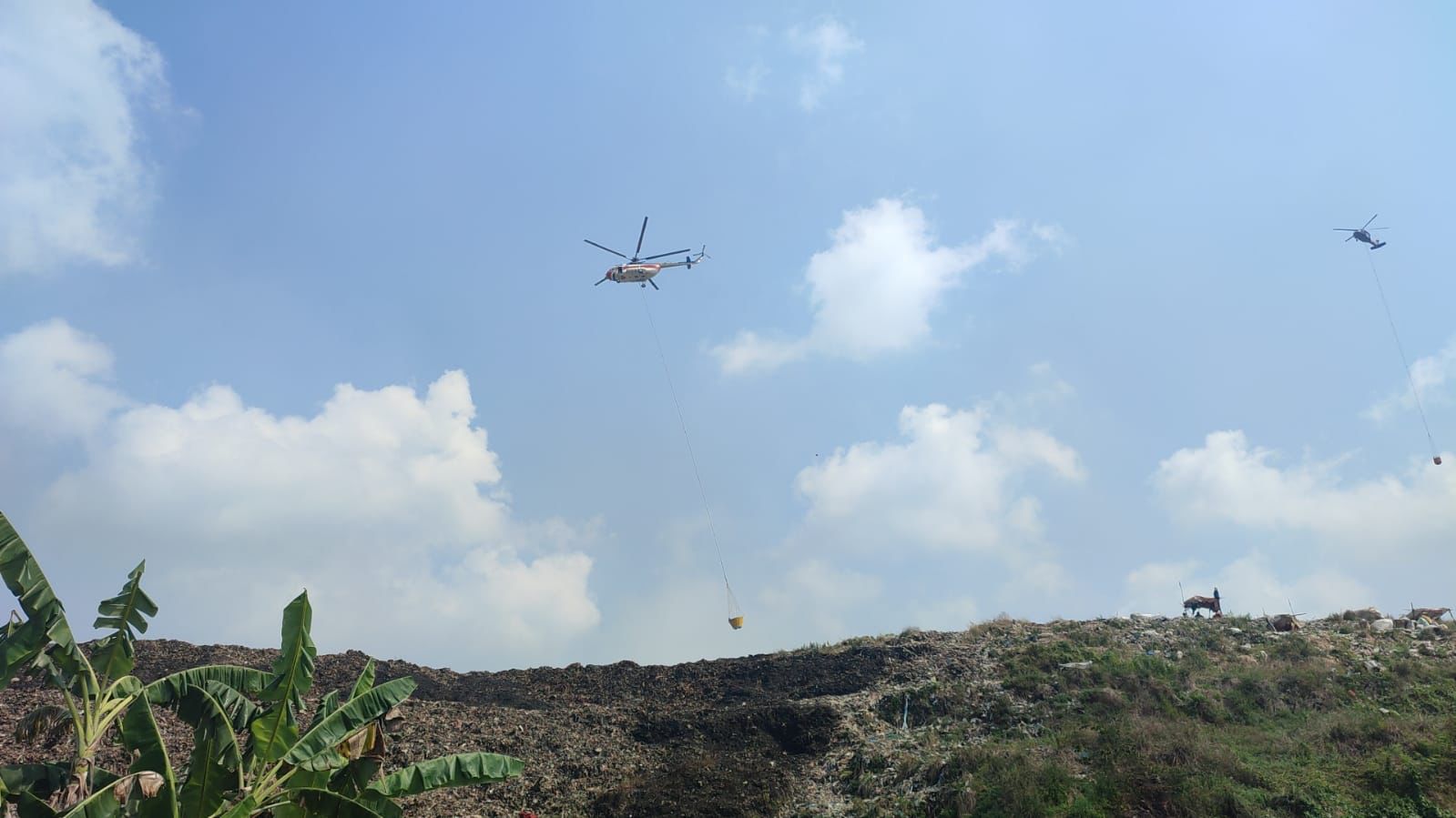 Kebakaran Tempat Pembuangan (TPA) Sukawinatan saat ini memasuki hari ke lima yang terjadi pada Jumat (11/8/2023) kemarin, maka dari itu DLHK Kota Palembang dari BNPB melakukan pemadaman menggunakan helikopter Water Bombing.
