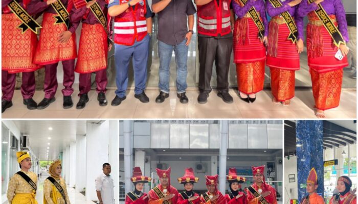 NUSANTARA Petugas Customer Service Mobile (CSM) Berbusana Adat Sambut Penumpang di Terminal Penumpang Bandar Deli Pelabuhan Belawan 12 April 2025