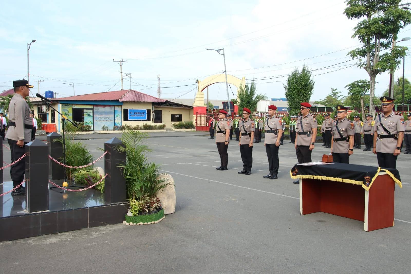 Upacara dipimpin langsung oleh jajaran pimpinan Polres Pelabuhan Belawan dan dihadiri Wakapolres Kompol Dedy Dharma, S.H., para Kabag, Kasat, Kapolsek jajaran, serta pengurus Bhayangkari Cabang Polres Pelabuhan Belawan.