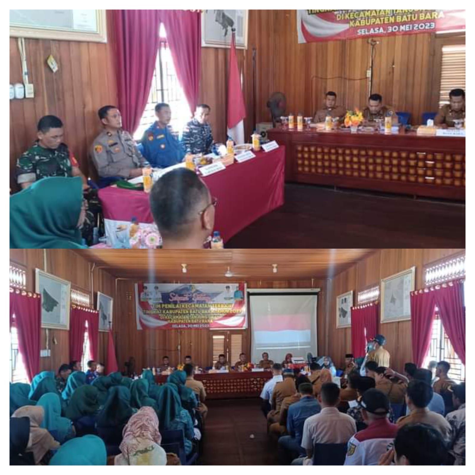 Tim Pembinaan dan Penilaian kecamatan tingkat kabupaten Batu Bara hadir di kecamatan Tanjung Tiram, dalam rangka melakukan penilaian kecamatan terbaik tingkat kabupaten Batu Bara tahun 2023 di aula kantor Camat Tanjung Tiram.(30/05/2023)