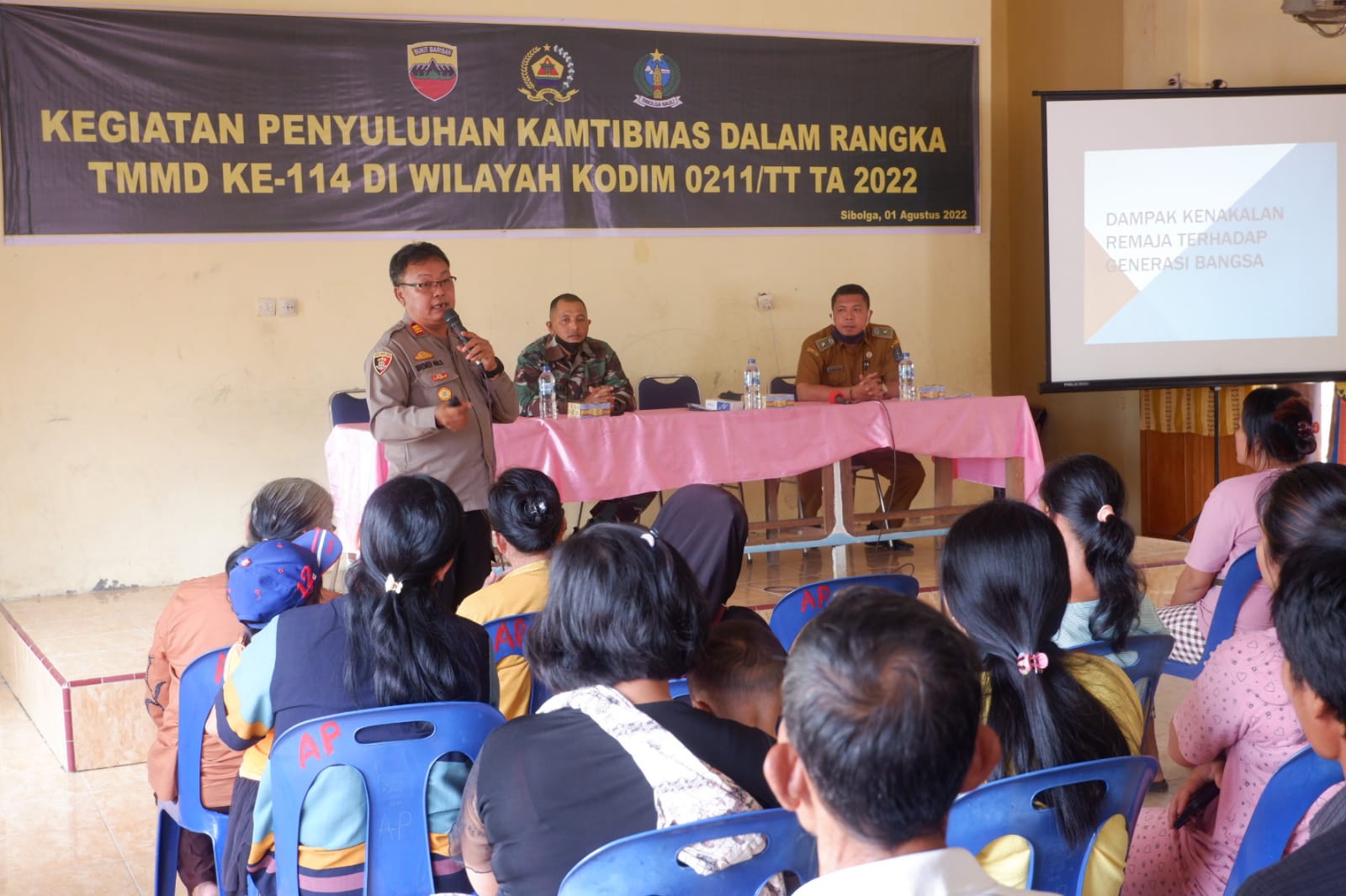MAWARTANEWS.com, SIBOLGA – Untuk mengajak masyarakat agar ikut andil dalam menjaga keamanan dan kekondusifan wilayah, tidak melakukan tindakan negatif yang melanggar hukum, Satgas TMMD Kodim 0211/TT melaksanakan kegiatan penyuluhan Kamtibmas kepada masyarakat.