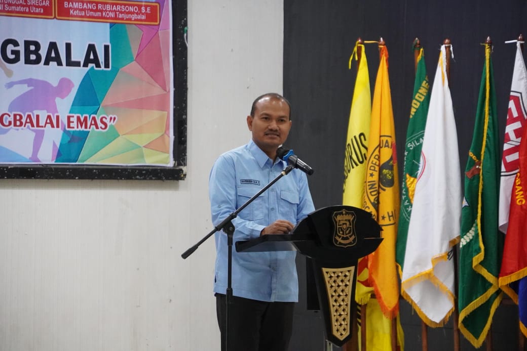 Dalam sambutannya, Mahyaruddin menegaskan pentingnya sinergi antara KONI dan Pemerintah Kota dalam mewujudkan visi Tanjungbalai EMAS (Elok, Maju, Agamais dan Sejahtera).