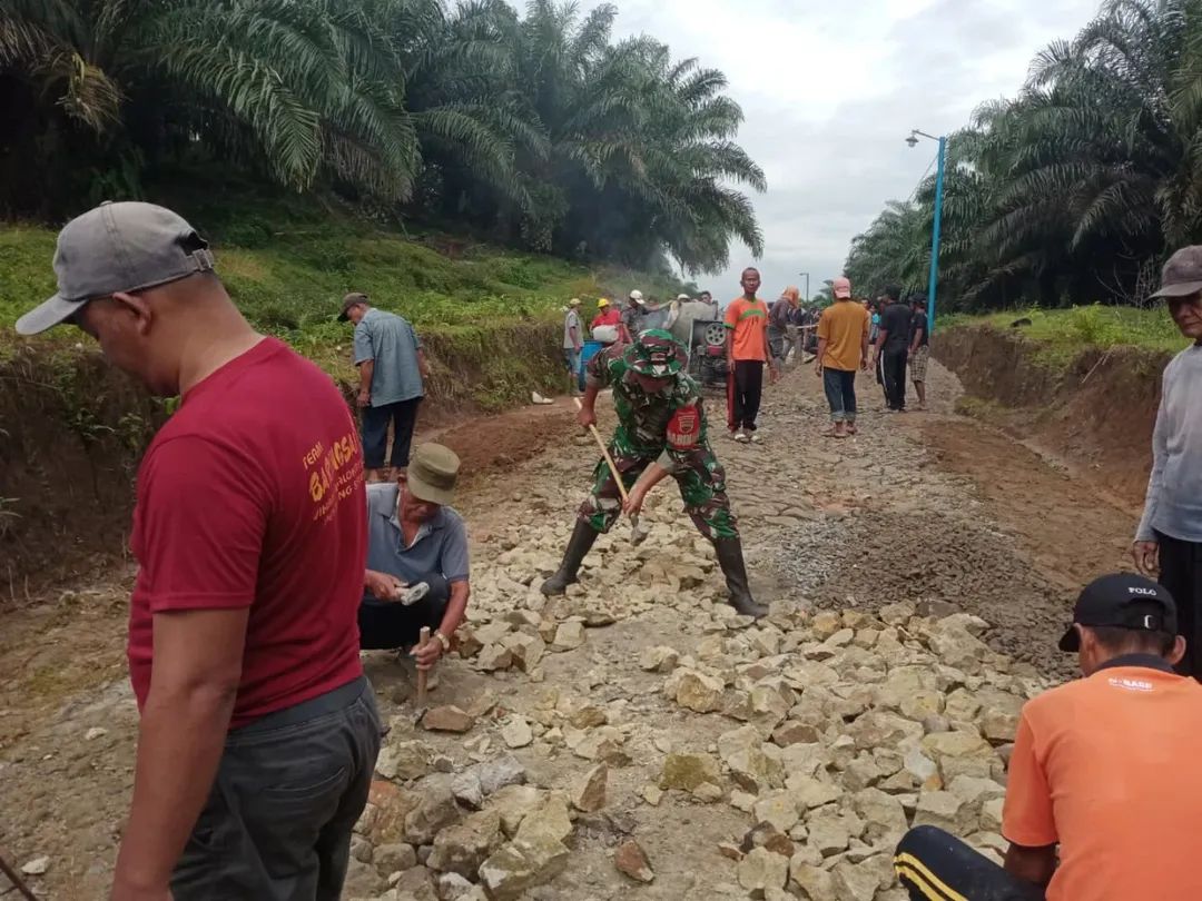 Kegiatan gotong royong ini merupakan bentuk nyata sinergi antara TNI dan masyarakat dalam mendukung pembangunan infrastruktur desa.